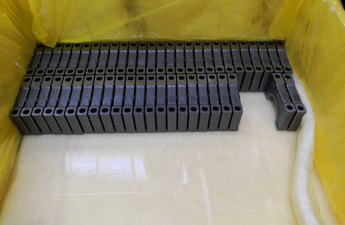1.中間紙にダンボールを使用しており、輸送中の部品の揺れや摩擦により紙粉が発生します。また、防錆油により脂汚れが発生しやすく、汚れを吸着しやすいです。