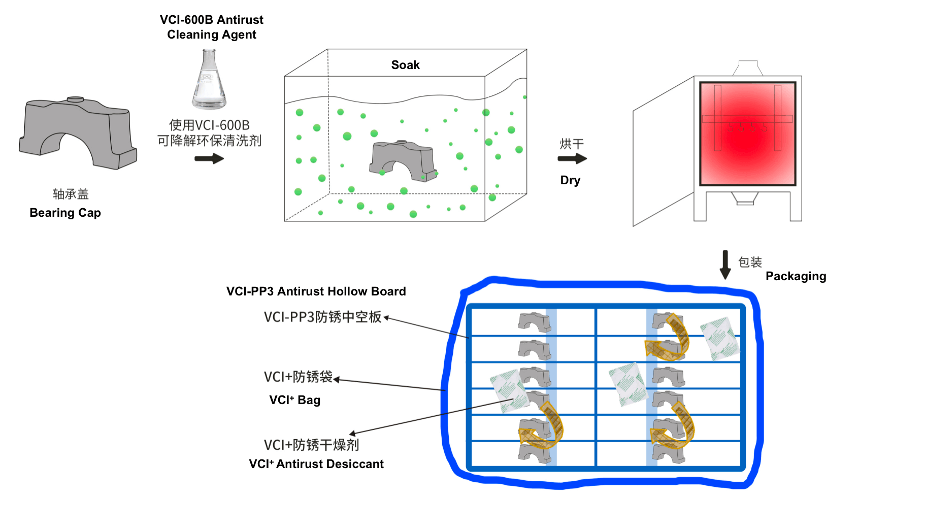3.VCI-PP3防錆中空ボード、VCI+袋、VCI+防錆乾燥剤を使用してください。